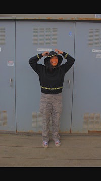 Revamped a huge hoodie/sweater into a cute 2 piece fit! Has cow print ribbon+white lace; bottom has draw string; can fit sizes small-Medium